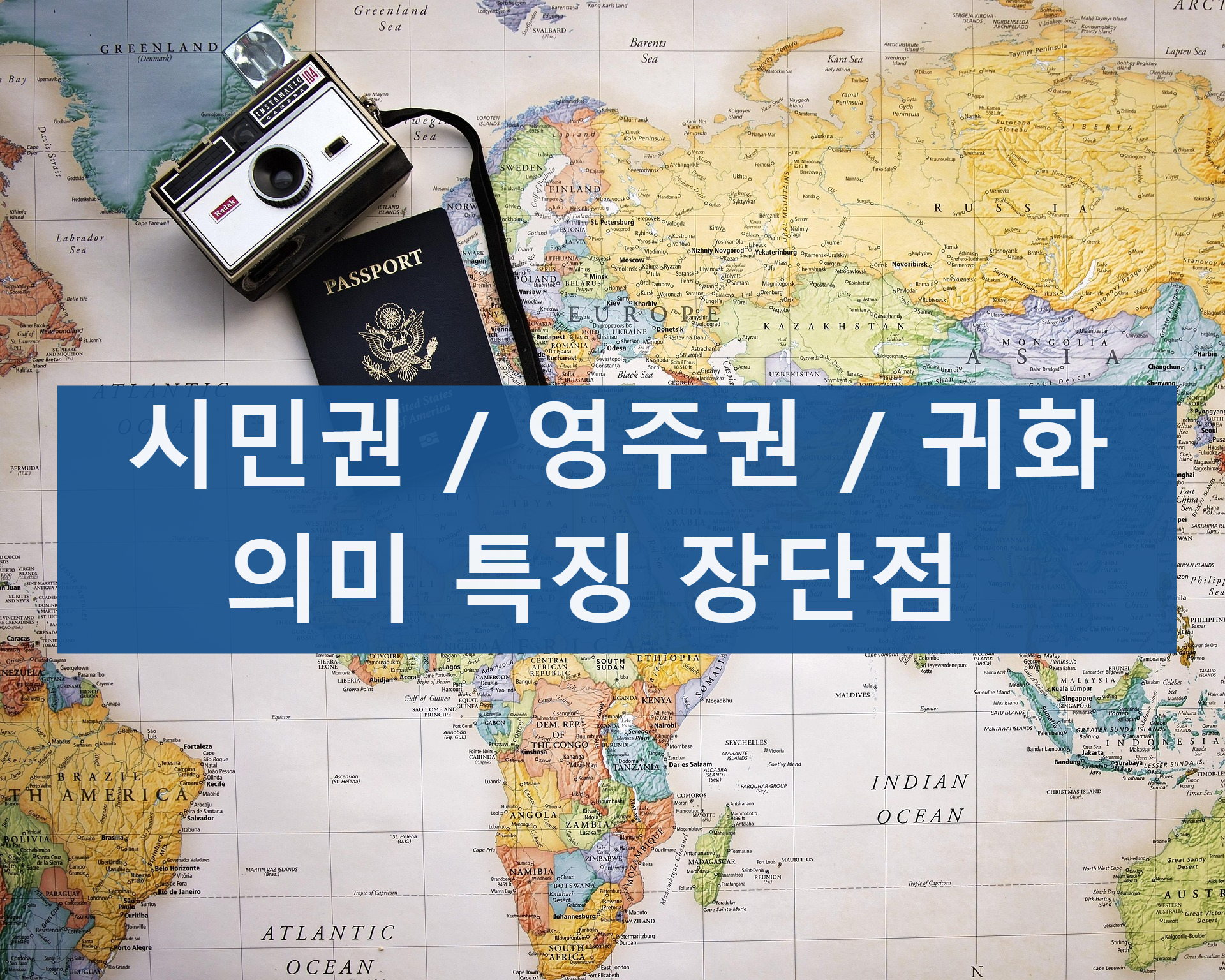 간단하게 영주권은 '외국인 신분으로 해당 국가에 평생 살 수 있는 권리'를 의미하며, 시민권은 '해당 국가의 국적을 취득하여 국민이 되는 것'을 의미합니다. 즉 시민권을 얻는다는 건 한국의 국적이 아닌 그 나라의 국적을 갖게 된단 뜻이죠. (여권도 바뀌고 내 나라(?)도 바뀜)